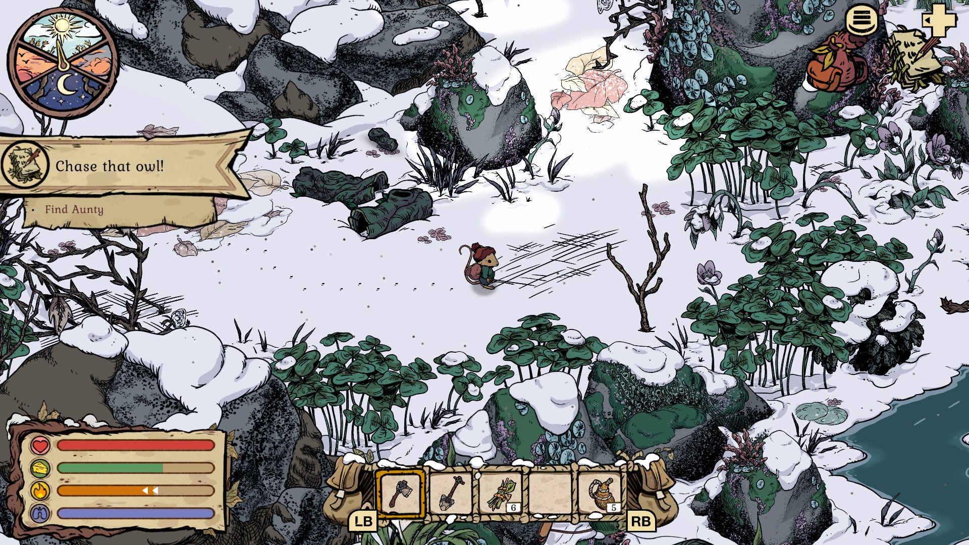 В Winter Burrow вы играете за мышь, которая возвращается из большого города и обнаруживает, что ее родной дом разрушен. Что еще хуже, ваша тетя, которая должна была присматривать за домом, пропала. Восстановите свое разрушенное детство до былой славы, чтобы расслабиться у камина.