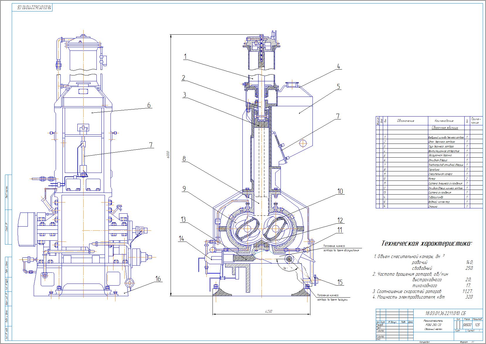 Чертеж резиносмесителя модели РСВД 250/20. Чертеж выполнен в программе Компас 3D