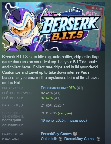 Berserk BITS — это игра в жанре RPG с автобаттлером и коллекционированием фишек, которая запускается на вашем компьютере. Пусть ваш BIT сражается и собирает предметы. Собирайте редкие фишки и создавайте свою колоду! Настраивайте персонажа и повышайте его уровень, чтобы побеждать опасных боссов вирусов и раскрывать тайны сетевых атак.
